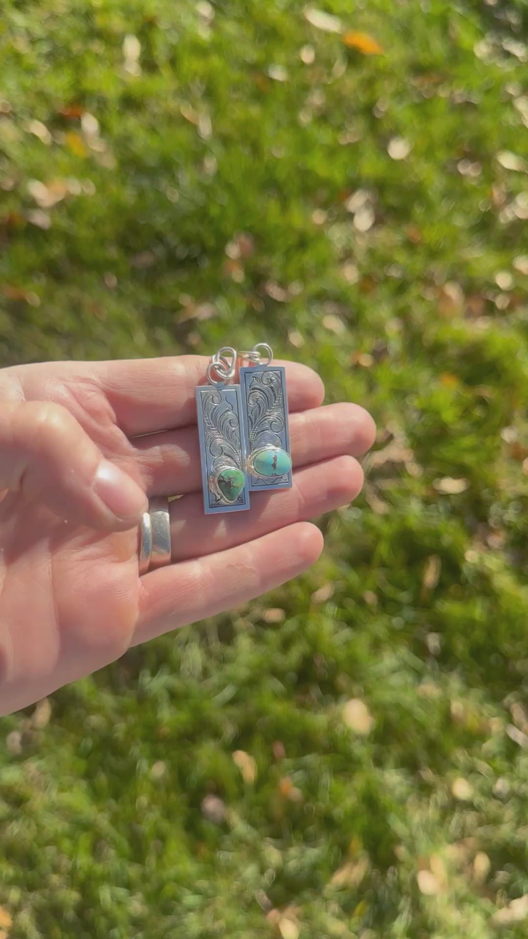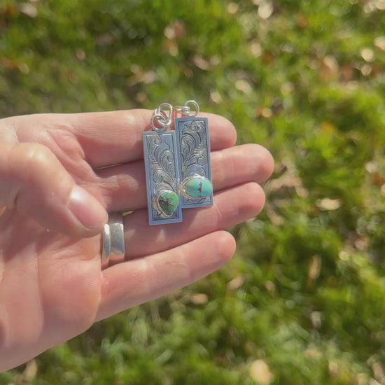 Engraved Sterling Silver & Turquoise Rectangular Pendants