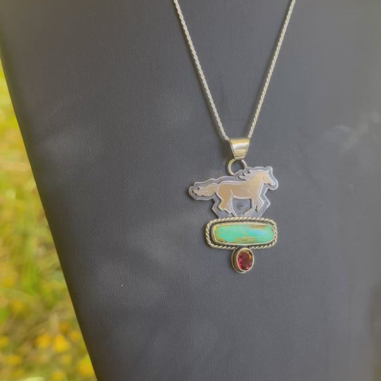 Skysong Turquoise & Rhodolite Garnet Running Horse Necklace