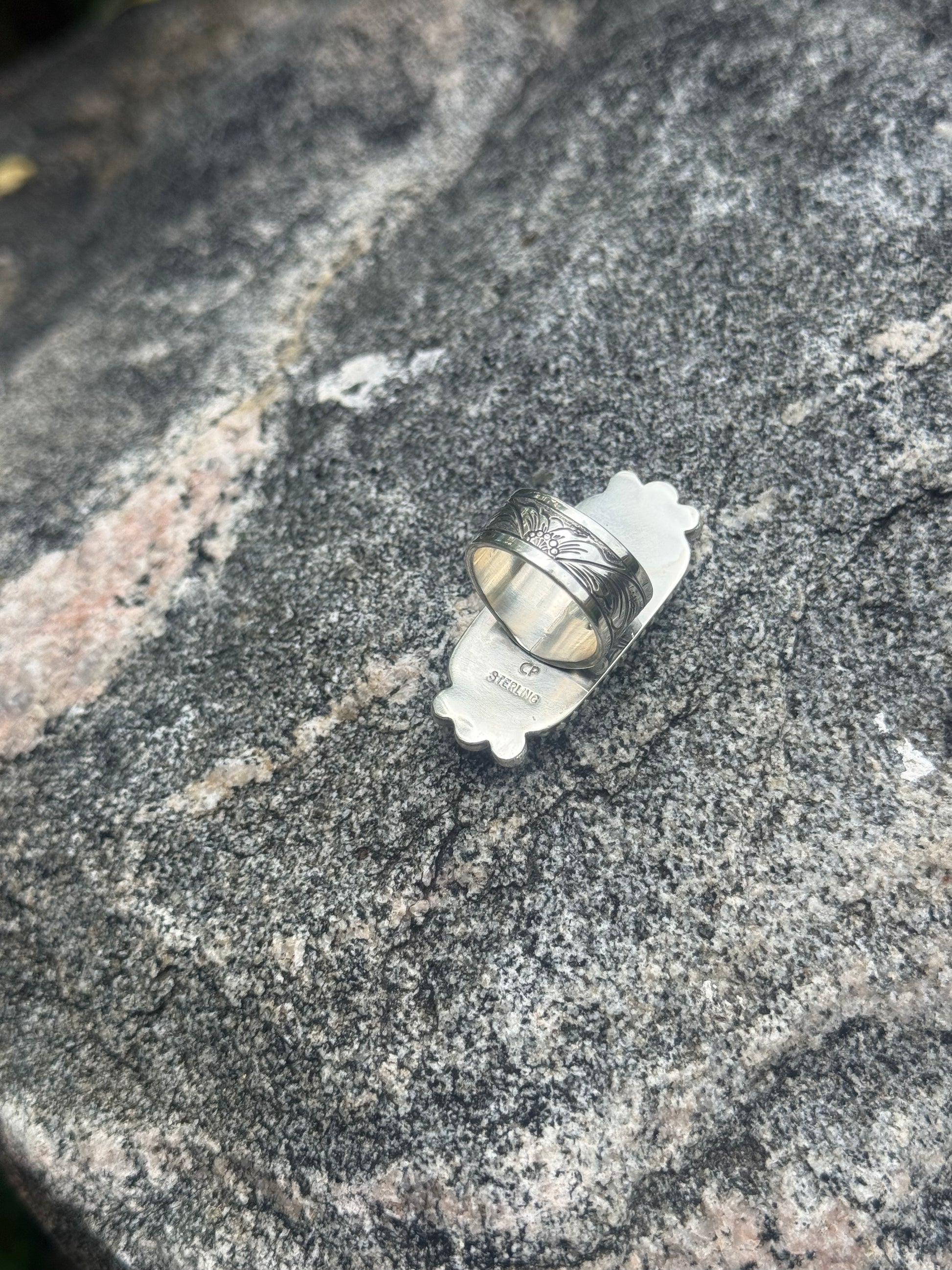Sterling Silver, Turquoise & Spiny Oyster Engraved Ring